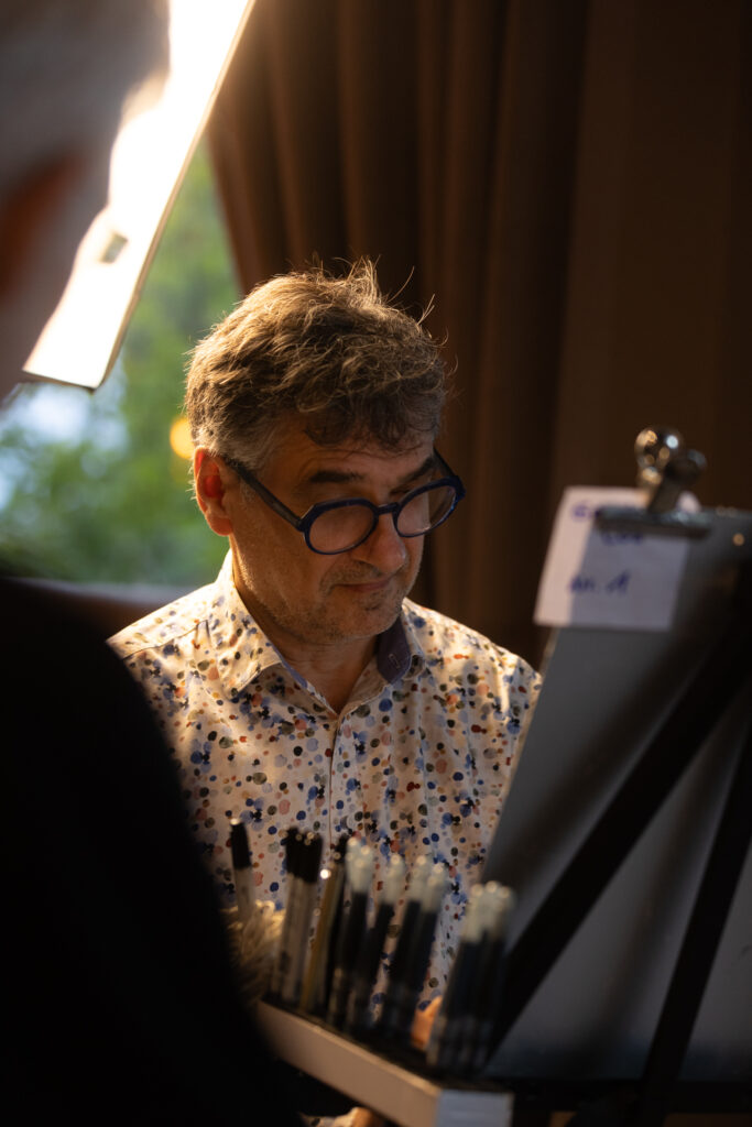 Ein besonderer Magnet des Abends: unser Karikaturist. Wer ein Los mit Nummer gezogen hatte, konnte sich porträtieren lassen – spontan, lebendig und mit einer Portion Augenzwinkern. Die Schlange war lang, die Stimmung großartig, und am Ende hielten viele Gäste eine ganz persönliche Erinnerung in den Händen.